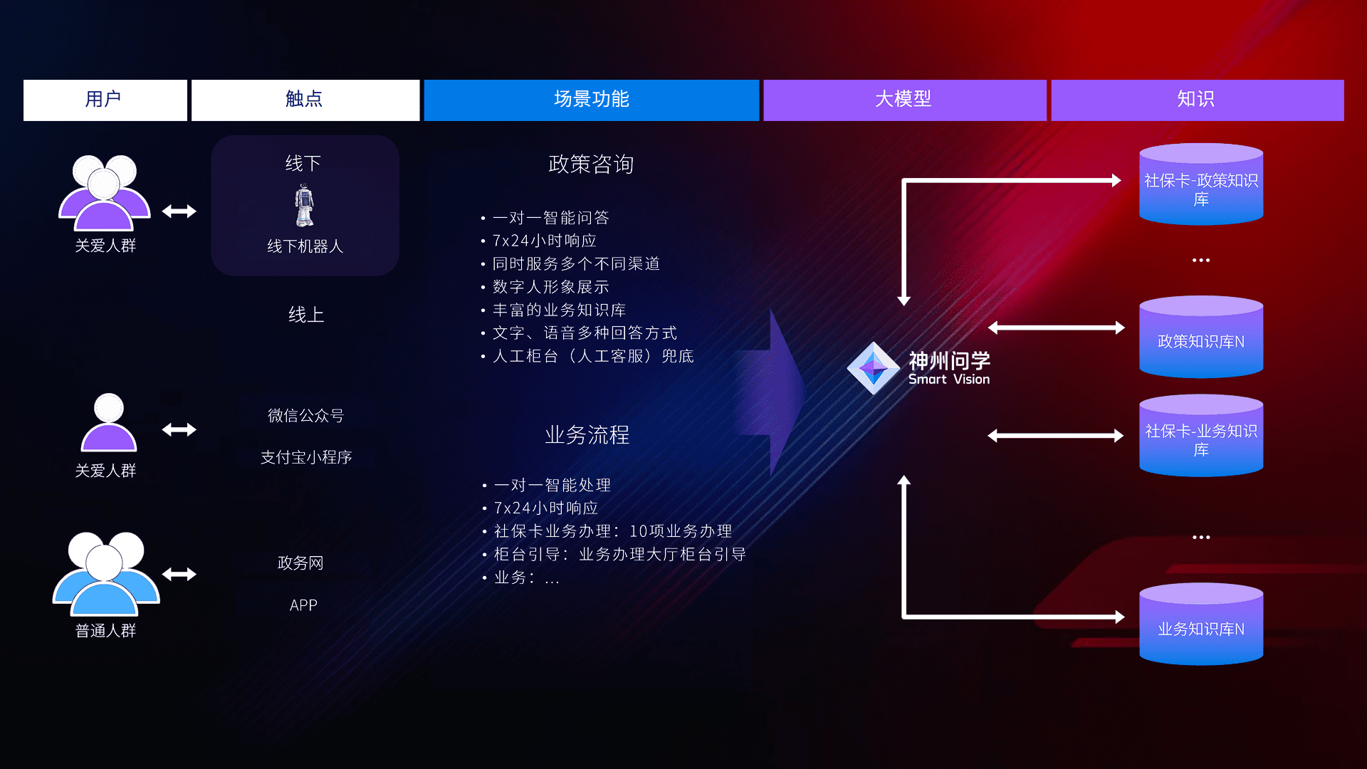 • 线上线下全覆盖:线上提供微信公众号、、支付宝小程序、、政务网、、app多种渠道,,与线下机器人形成完整服务体系。。
